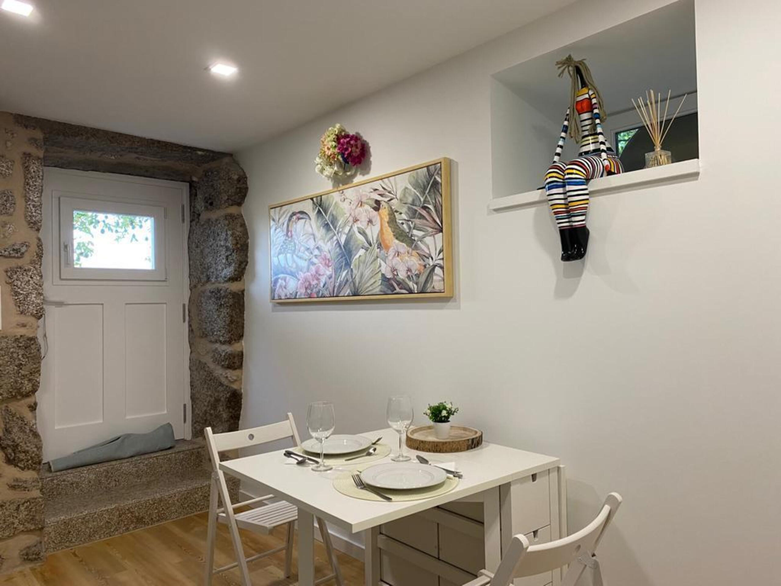Dispõe de mobiliário de jardim, para 2 pessoas. Acesso à internet (wifi), ar-condicionado. Com estacionamento ao ar livre a poucos metros da casa.