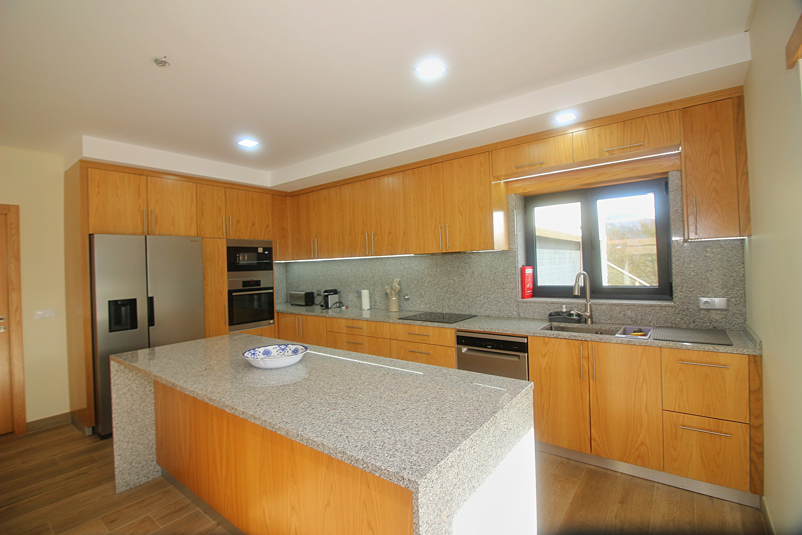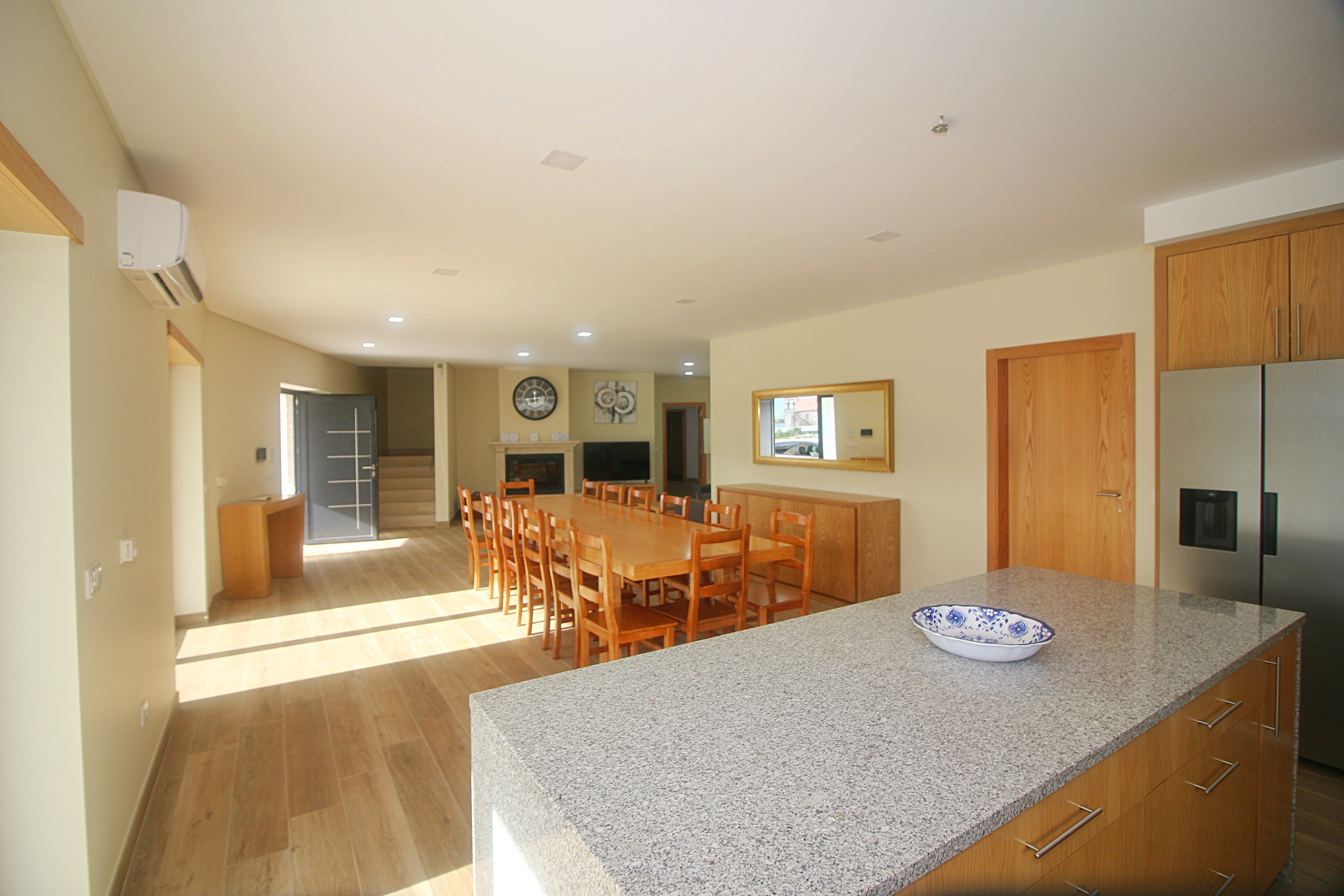 A casa dispõe de aquecimento por bomba de calor, lareira para noites mais frescas, TV com canais internacionais e WiFi. O estacionamento privativo permite acomodar 2 viaturas.
