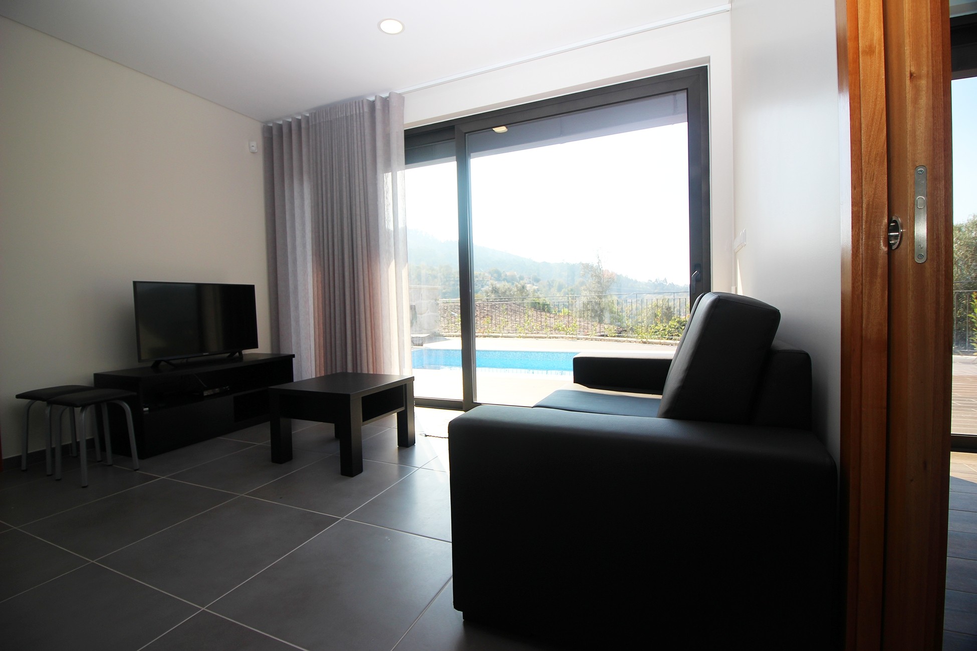 Logement de 80 m² de construction récente, avec vue sur la montagne et la piscine.